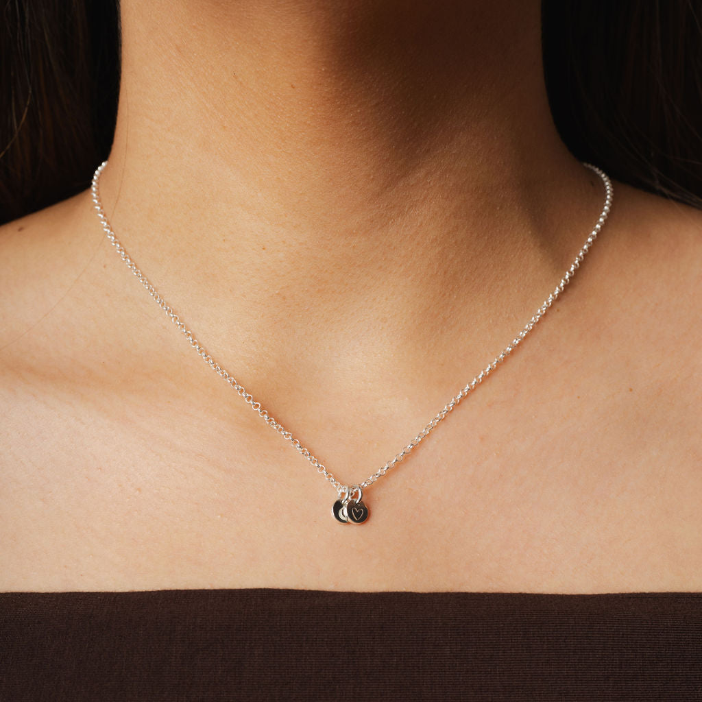 Este collar TinyTwins en tamaño XS ofrece un diseño delicado con un dúo de dijes personalizables, ideal para llevar un toque único y significativo cerca del corazón. Perfecto para quienes buscan una pieza sutil pero con estilo, permite expresar identidad o recuerdos especiales con elegancia y discreción.